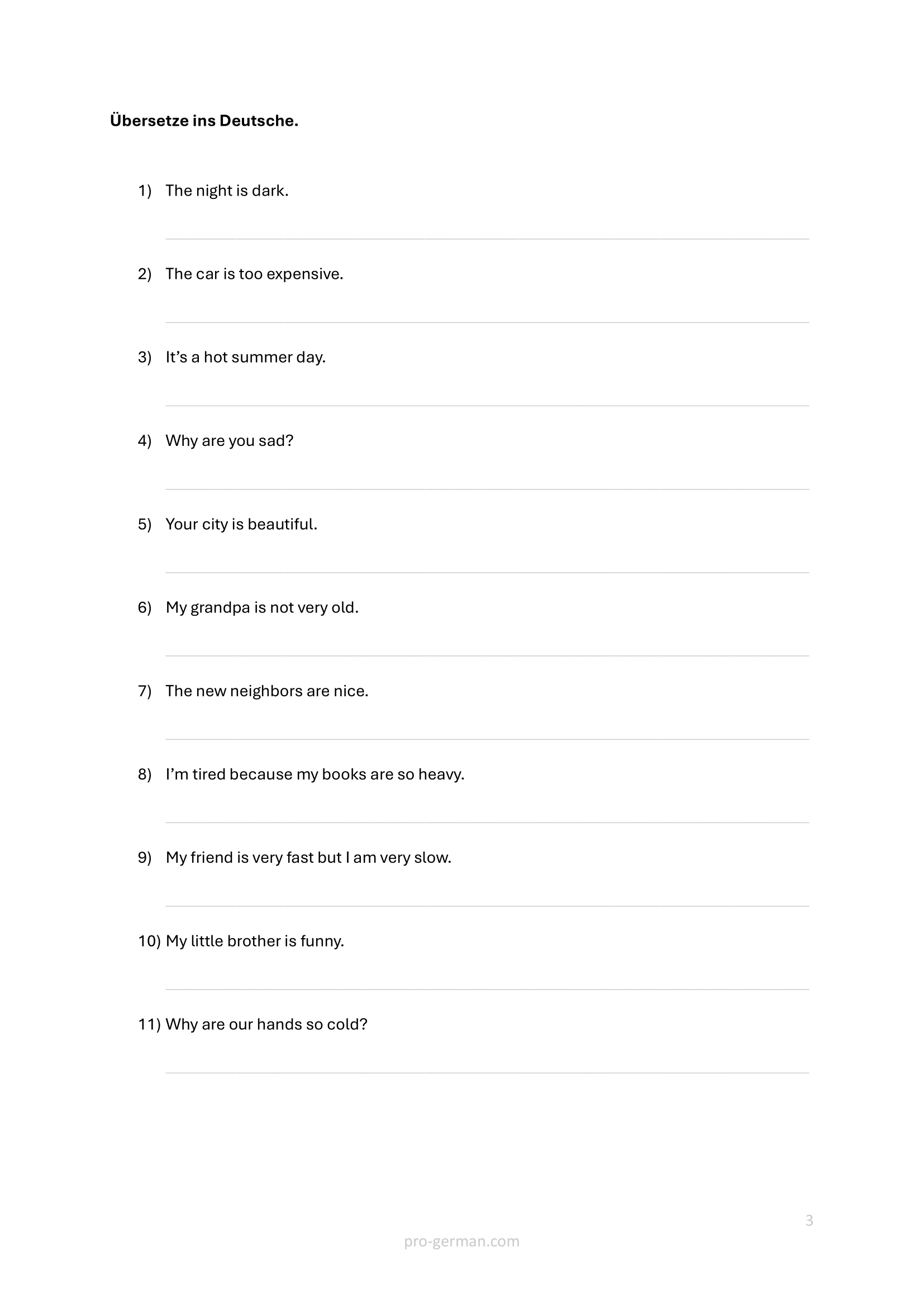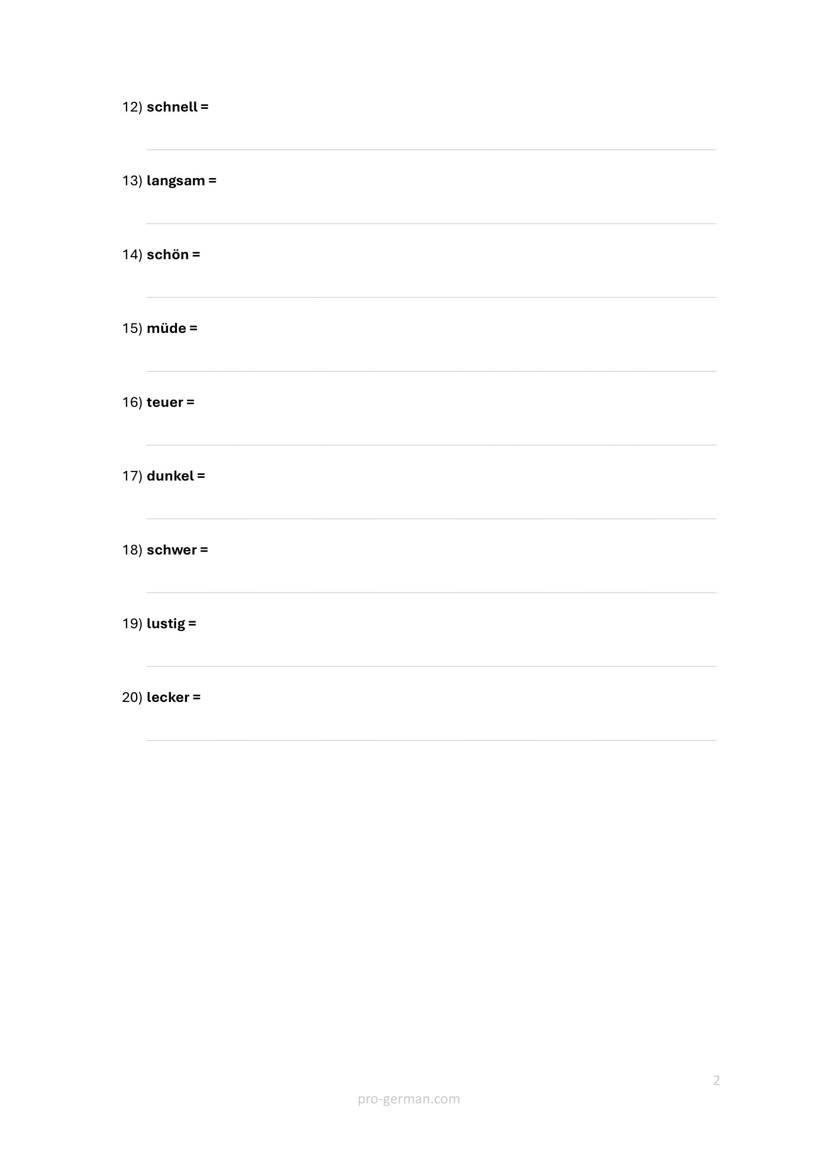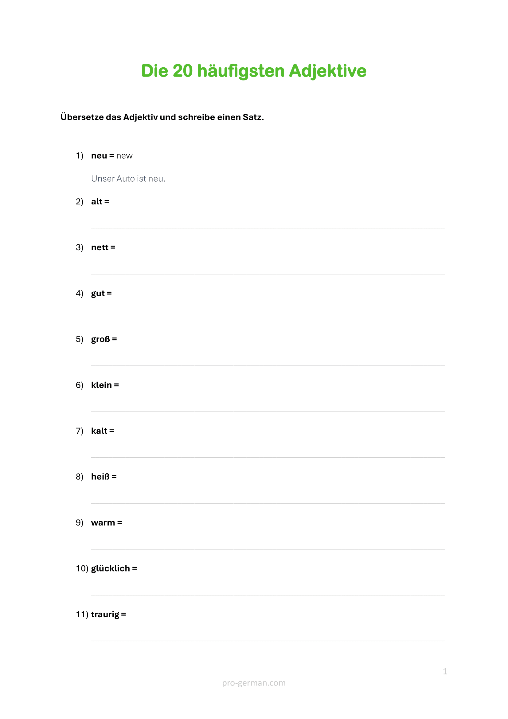 In dieser Übung geht es um die häufigsten deutschen Adjektive und darum, wie man mit ihnen Sätze bildet.