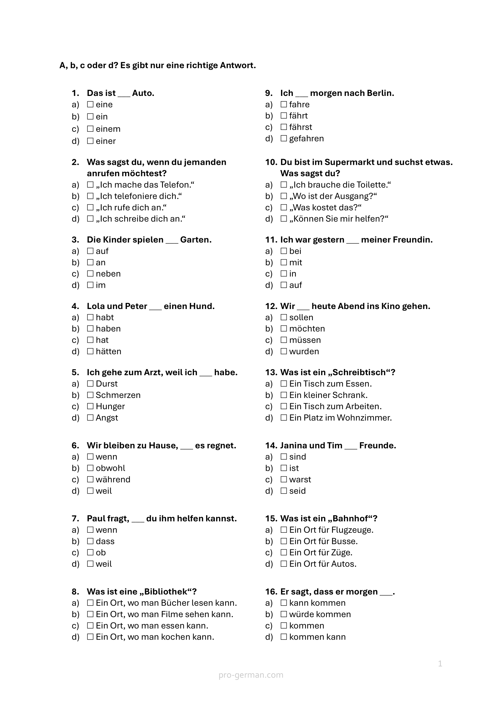 In dieser Übung geht es um Multiple-Choice-Fragen für Anfänger.