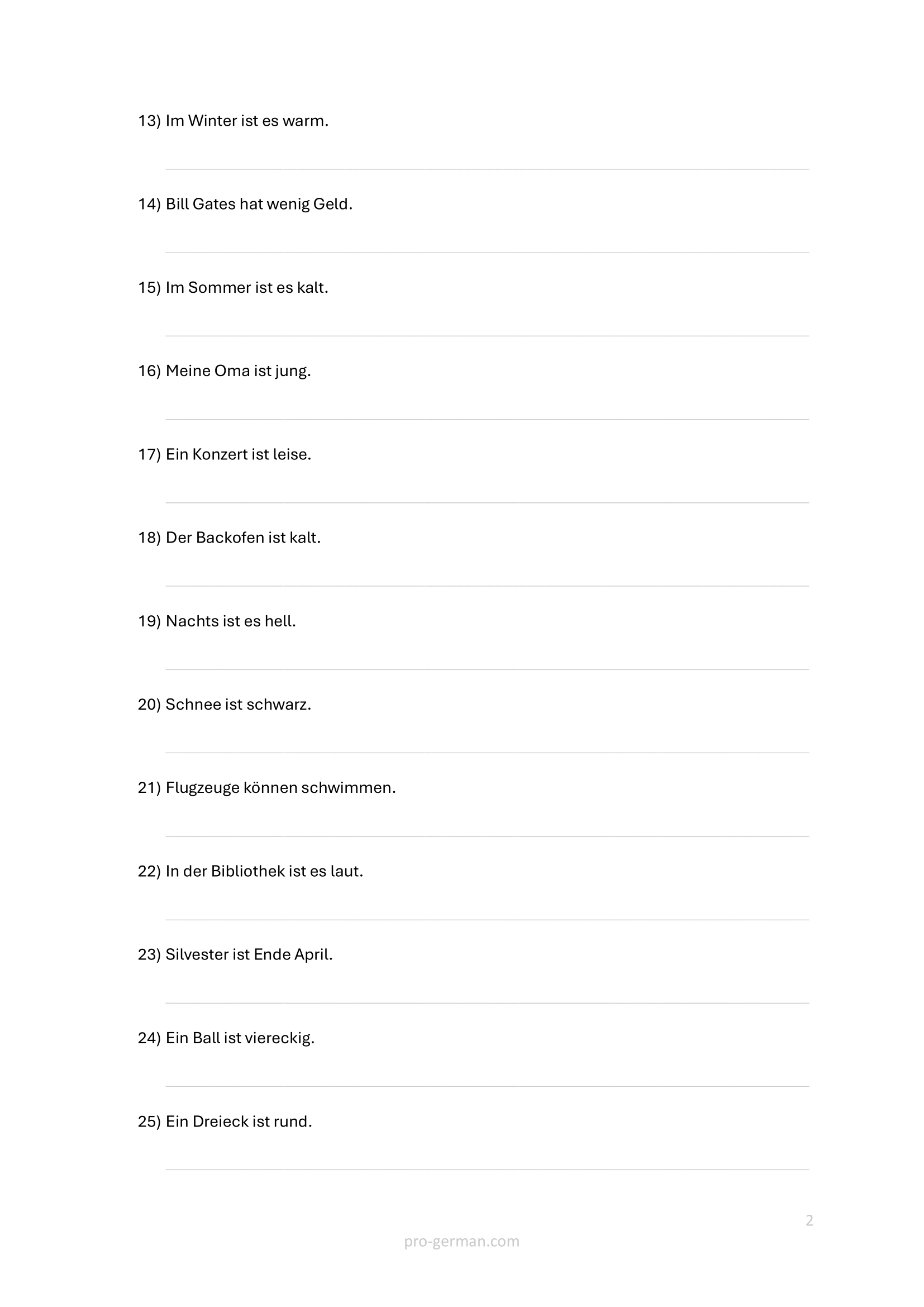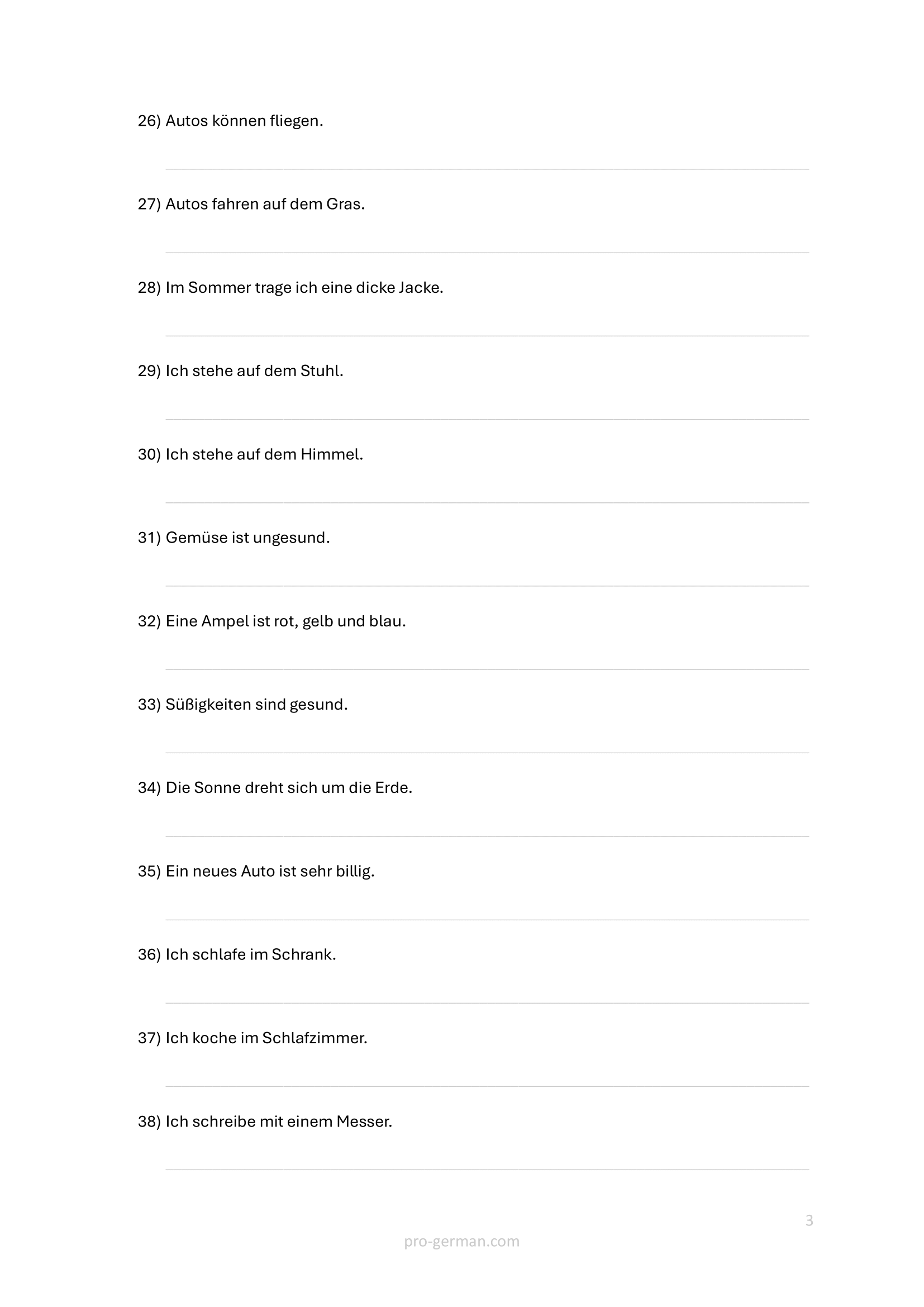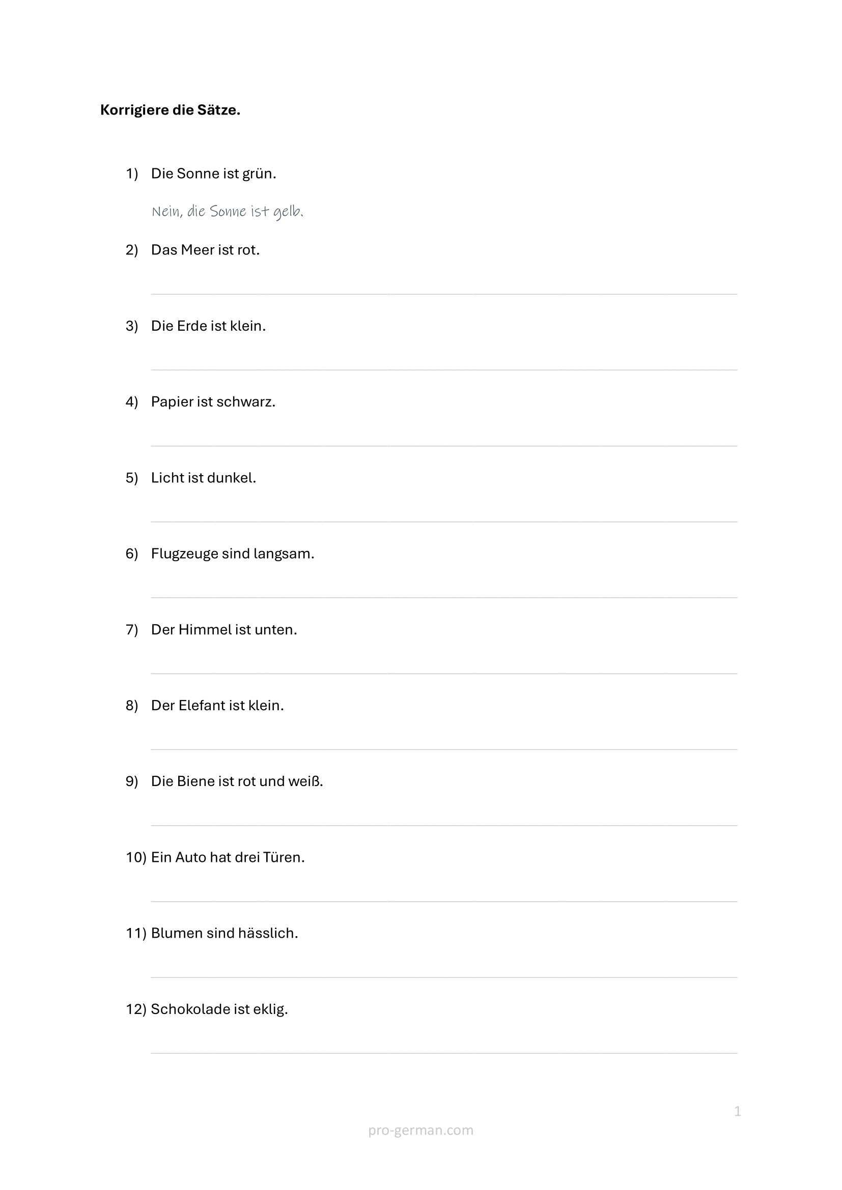 In dieser Übung müssen Sätze so korrigiert werden, dass sie Sinn ergeben.